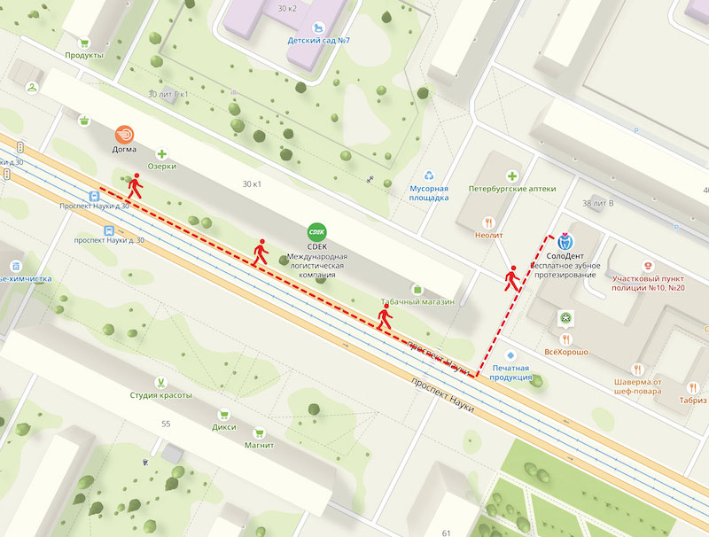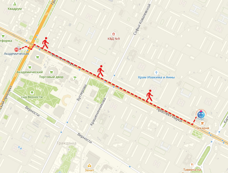 Четыре остановки общественным транспортом до остановки Пр. Науки, д. 30, (время проезда до остановки транспортом 10 минут). Автобусы: № 102,153,177,202, 206, 283, 293; трамвай № 9,38,57; троллейбус № 38.
